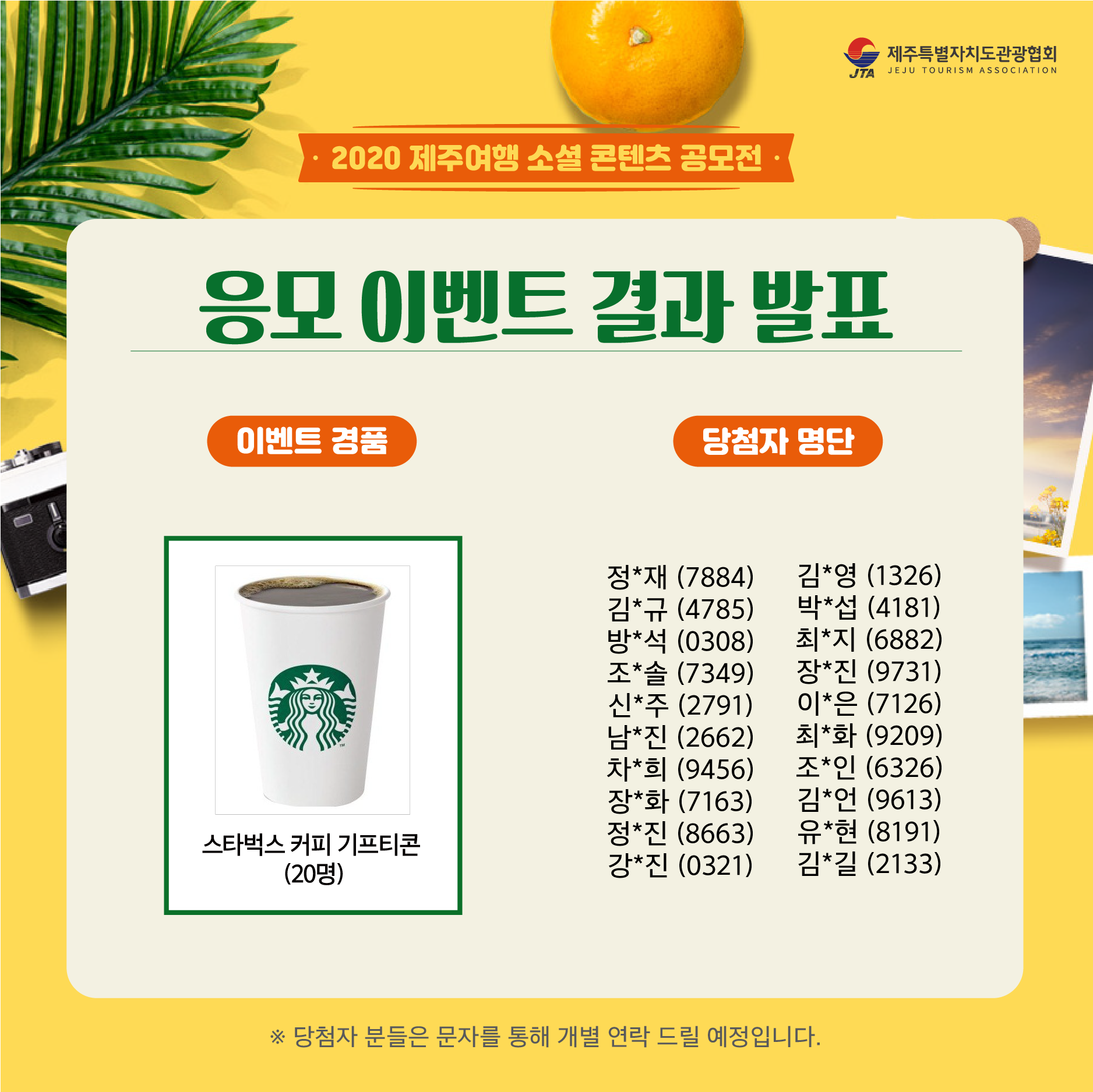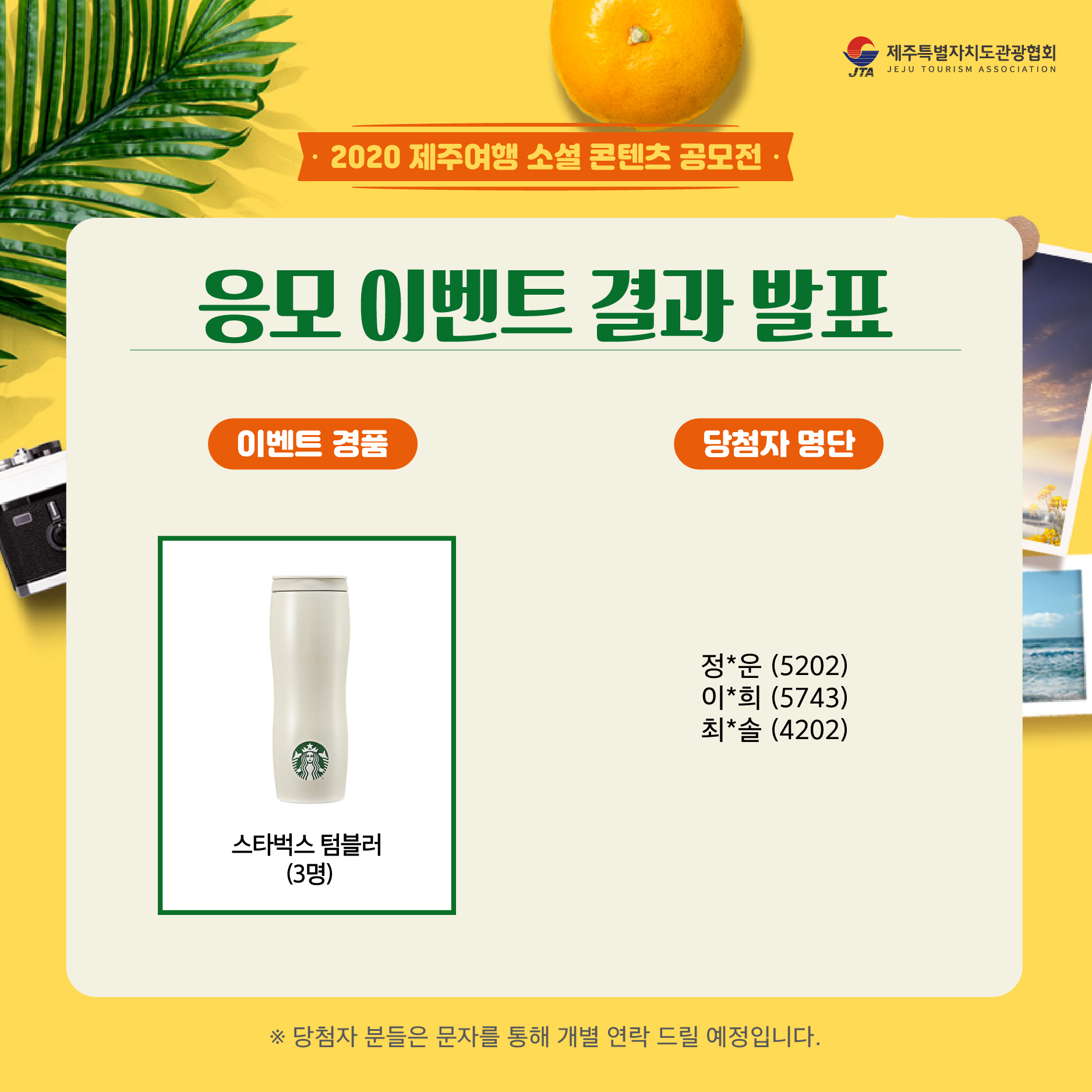2020 제주여행 소셜 콘텐츠 공모전 응모 이벤트 당첨자 발표!!✨