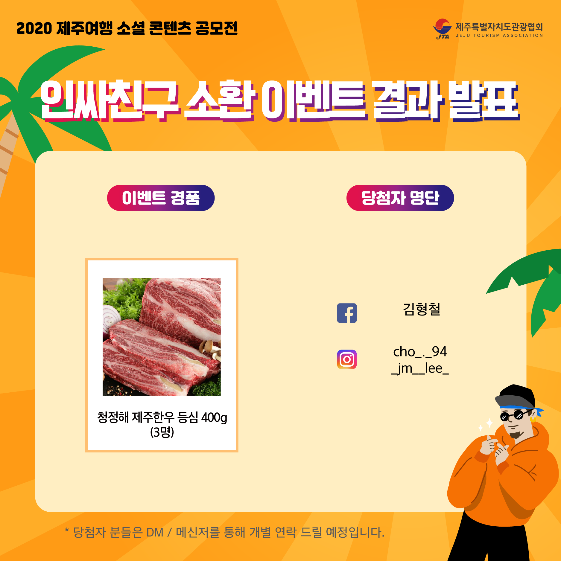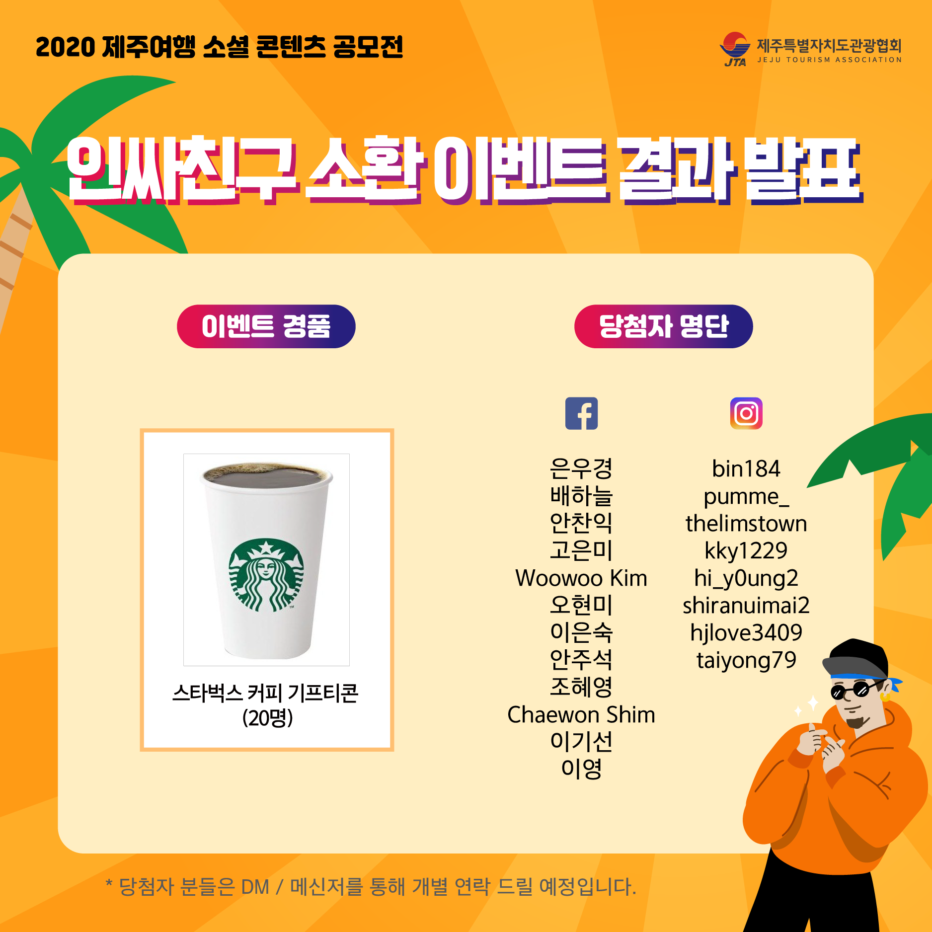 • 2020 제주여행 소셜 콘텐츠 공모전 인싸 친구 소환 이벤트 당첨자 발표!!✨